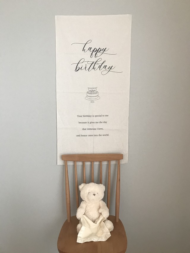 即納 Tapestry 縦型 コットンリネンのバースデータペストリー Happy Birthday ナチュラル ケーキ ファブリックポスター 名入れなし Rose Bebe ローズべべ