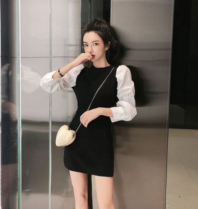 夏 ワンピース ショート丈ワンピース クルーネック レディース 韓国 秋冬 Cn06 ワンピの里